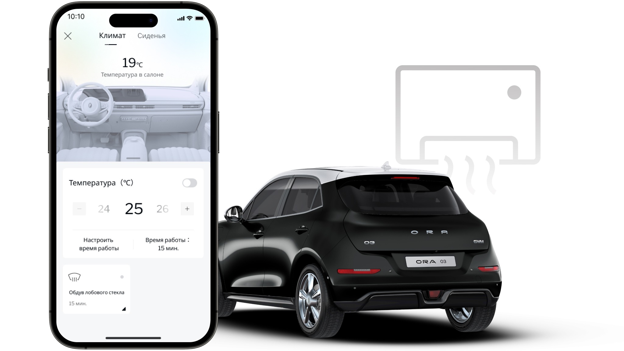 - Дистанционное включение климат-контроля с функцией отложенного запуска